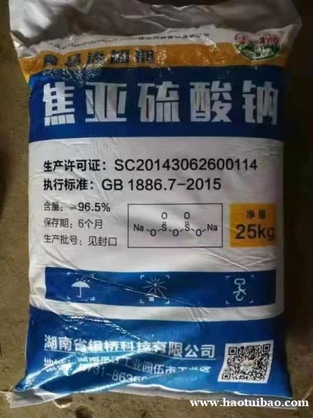 焦亚硫酸钠为白色或黄色结晶粉末或小结晶,带有强烈的SO2气味,比重 1.4,溶于水,水溶液呈酸性,与强酸接触则放出SO2而生成相应的盐类, 久置空气中,则氧化成Na2S2O6,故该产品不能久存。高于150摄氏度,即分解出SO2。 联系我时,请说是在好推宝看到的,谢谢!